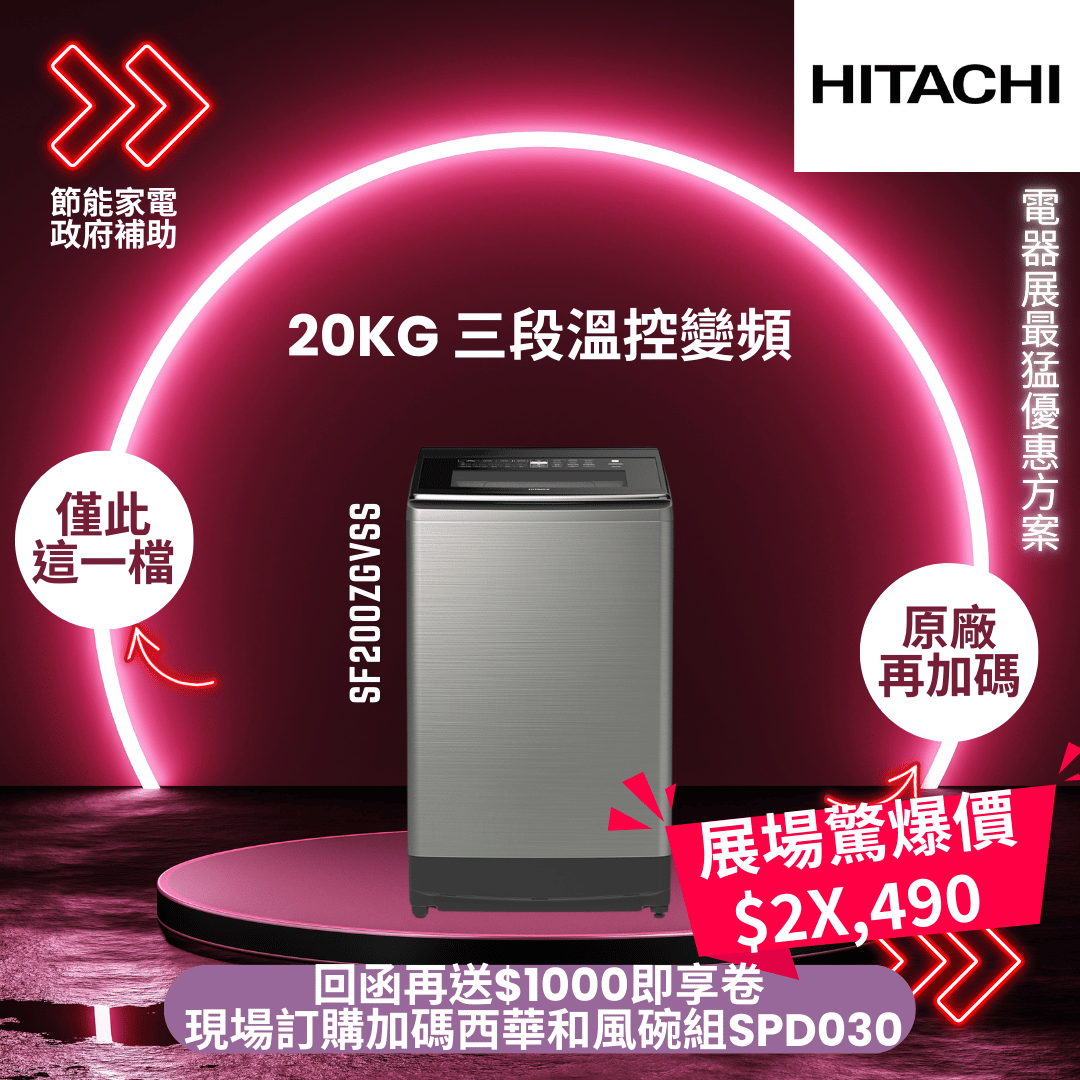 日立 20KG 三段溫控變頻直立式洗衣機(SF-200ZGV-SS)