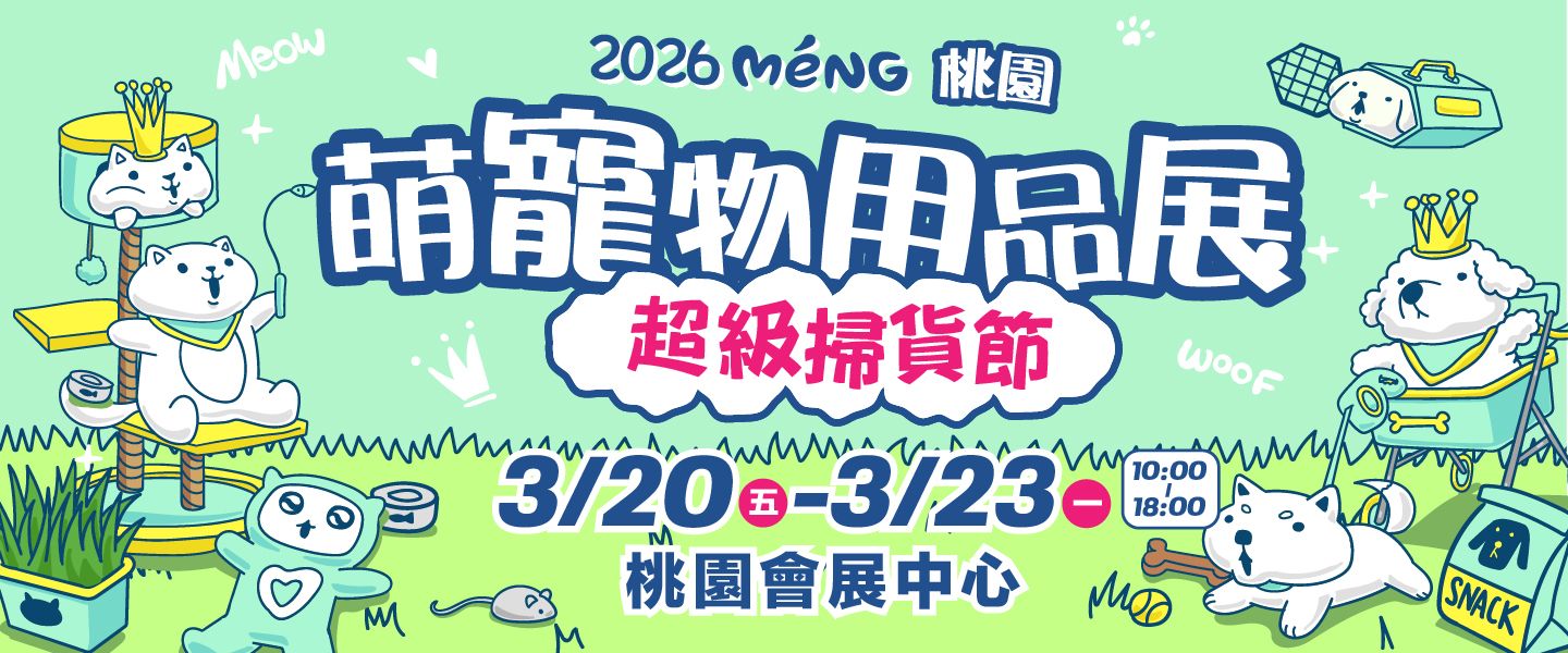 桃園萌寵物用品展屢創驚人佳績,萬名毛孩家長掃貨不停、人潮爆滿、熱鬧非凡!2026以「超級掃貨節」為主軸毛孩專屬狂歡場,百大人氣品牌齊聚、萬件好物現場帶走!