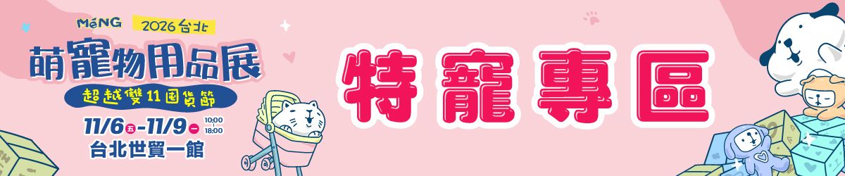 毛孩爸媽,準備衝了!2026台北萌寵物用品展將在11/06-11/09於台北世貿一館盛大開展,四天限定的「超越雙11囤貨節」強勢開跑!集結全台最熱銷的飼料、凍乾、鮮食、推車、服飾、清潔用品、保健品等,以及話題智能寵物家電一次集合,展場限定優惠下殺到底,最低折扣讓你心花怒放,一次採買一整年的庫存。