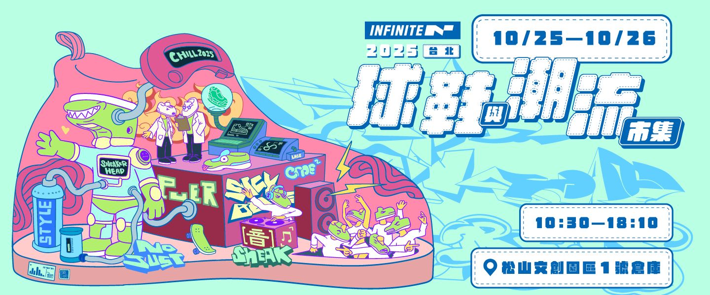 台灣史上最大規模「2025 台北 INFINITE 球鞋與潮流市集」是由粉絲數超越 45.7 萬人的社群「球鞋交易中」所創辦,迄今市集展覽已舉辦 24 屆,此次10/25-10/26 將於松山文創園區 1號倉庫集結破萬雙熱門鞋款、球衣、文創、潮牌服飾攤位等,提供球鞋愛好者最新、最潮的產品,讓球鞋愛好者互相交流、分享球鞋文化和收藏,絕對是一個獨特的潮流購物展覽體驗。